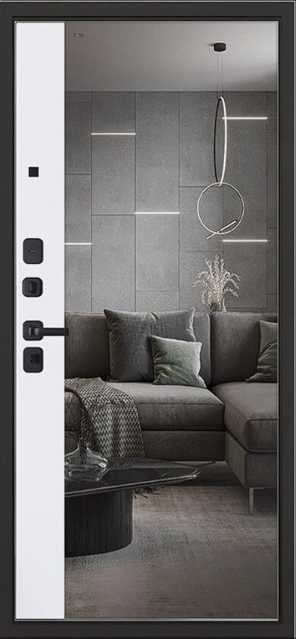 Надежная входная Дверь Scandi с зеркалом премиум класса по цене 45 863 руб. Большая толщина стали защитит от проникновения в ваш дом, квартиру или коттедж. Используется очень качественная фурнитура: замки, цилиндры, ручки, защелки. Покрытие и отделка двери изготовлено под внимательным контролем производителя. Дверь имеет долгий срок службы и гарантию.